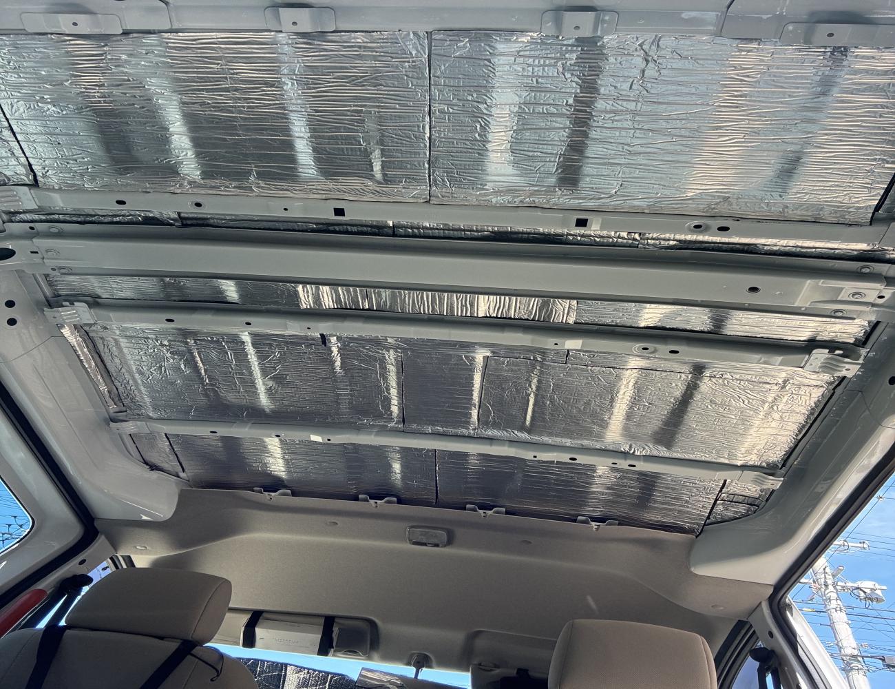 ![]() 車内が暑くならないようにDIY 天井の内張を剥がし、天井の鉄板に断熱材を敷き詰めました。 車内温度の上昇が和らいだらいいなと思います。