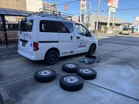 スタッドレスタイヤ装着しました。 |